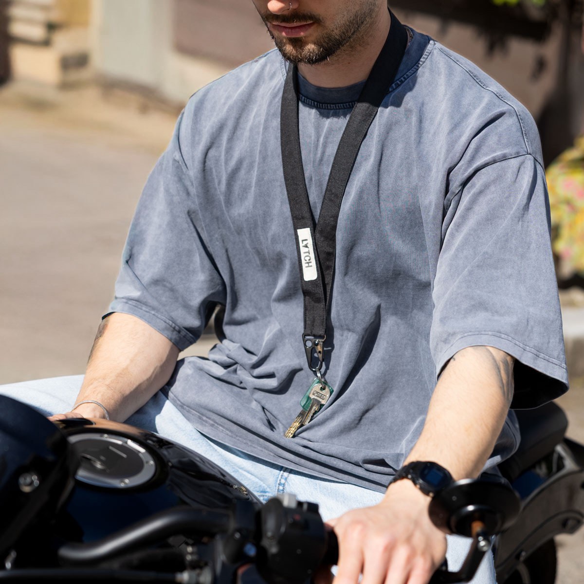 Μαύρο μονόχρωμο υφασμάτινο lanyard.
